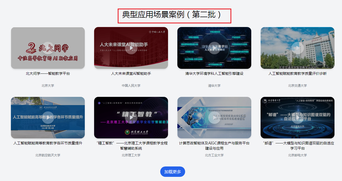 教育部高等教育司分别于2024年4月和11月评选出两批“‘人工智能+高等教育’应用场景典型案例”,并将案例视频以专栏形式发布在国家高等教育智慧教育平台,根据学校智慧课程建设进展情况,现推荐全校教师登录国家高等智慧教育平台,通过观看案例视频,学习人工智能融入高等教育的方法与经验,并结合个人教授课程的实际建设基础,积极参加学校的智慧课程建设工作。