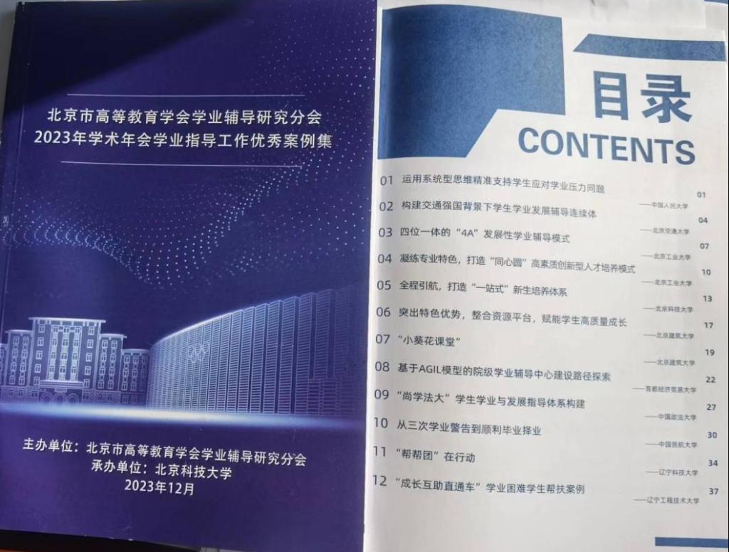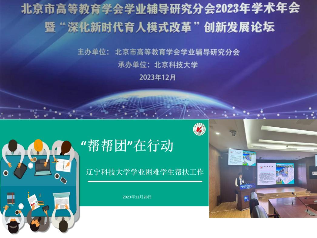 2023年12月28日,北京市高等教育学会学业辅导研究分会2023年学术年会暨“深化新时代育人模式改革”创新发展论坛在北京科技大学召开,来自清华大学等全国50所高等学校的150名学业指导战线代表参加本次论坛。我校的“‘帮帮团’在行动”学业困难帮扶工作经验被收入优秀案例集同时在学业辅导特色活动论坛上分享交流。