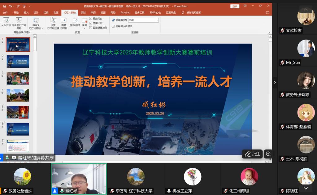 3月26日,MK体育在线(中国)唯一官方网站教务处教师教学发展中心组织开展2025年教师教学创新大赛赛前培训活动,邀请学校材料与冶金学院李万明教授、西南科技大学臧红彬教授,通过线上、线下方式,分别从不同角度为学校教师进行培训,60余名教师报名参加。