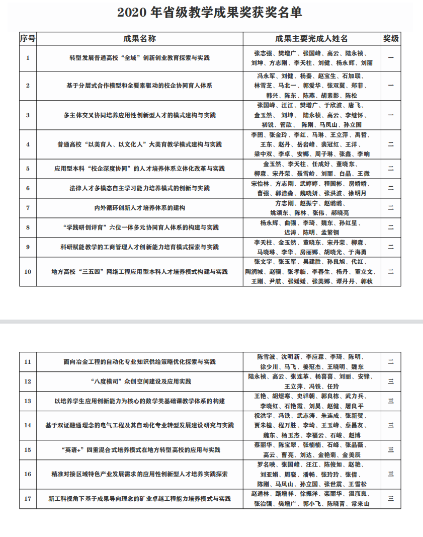 2020年辽宁省普通高等教育(本科)教学成果奖获奖名单