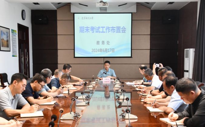 最后,李胜利讲话。他指出,期末考试工作是本科教育教学的重要环节,也是检验每学期教与学质量的重要结点。他强调,各教学单位务必高度重视,做好监考和考务人员的培训工作以及学生的动员工作,保证考试质量,维护考试公平公正,保障学生权益;各教学单位全体教师以及考务工作人员必须认真执行考试相关规定和要求,从严把关、规范考风考纪,确保期末考试各项工作顺利进行。(王艳/文 王洁/校 樊增广/审)