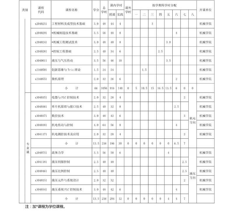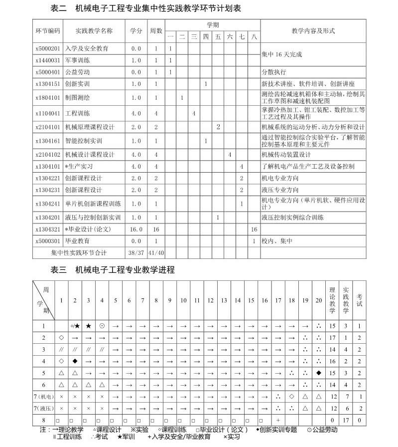机械电子工程专业培养方案(080204)(2017版)