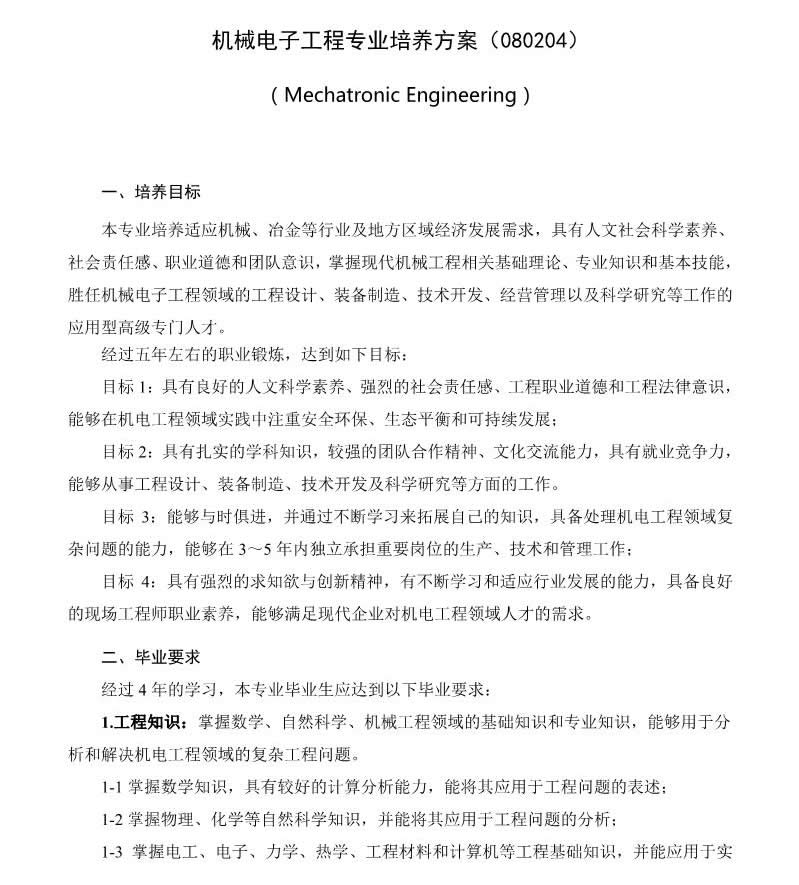 机械电子工程专业培养方案.pdf