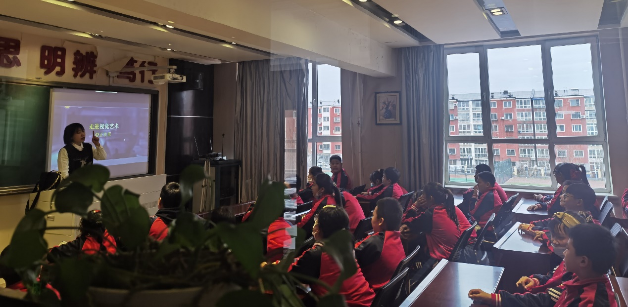 4月12日,MK体育在线(中国)唯一官方网站建艺学院“美育浸润计划”走进太平小学,教师赵艳和研究生陈心怡在三楼公共教室,为六年级同学们带来了生动的视觉艺术欣赏课。