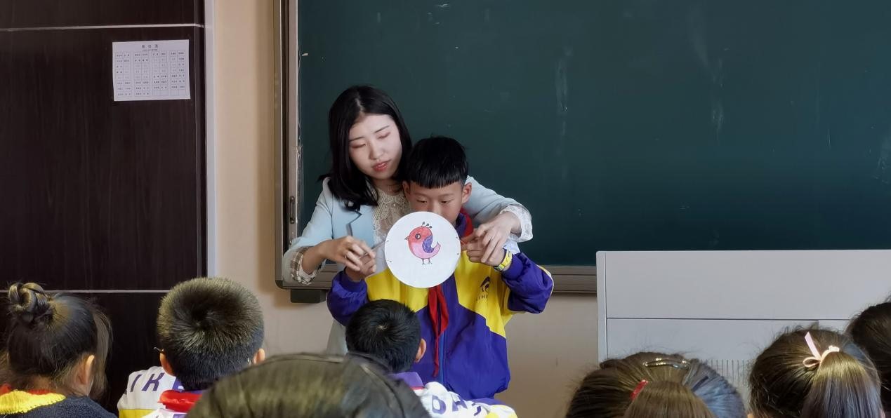 杜留亚以“铁扇公主战哪吒”作品展开讲解。两位喜闻乐见的动画角色激起了同学们的浓厚兴趣,眼睛瞪得大大的。杜老师以深入浅出的教学方式为同学们普及了动画的起源和发展,拓宽了同学们的知识面;尤其是自带教具“笼中鸟”的示范、互动的教学环节,效果极佳。伴随着下课铃声结束了“动画猜猜看”的游戏,同学们意犹未尽。