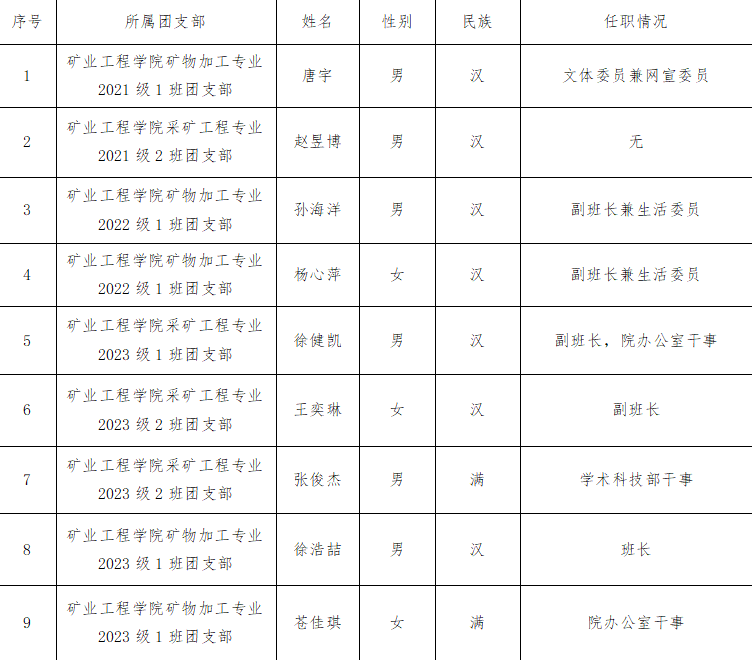 经各团支部推荐、学院团委审查、报学院党委通过,现对发展唐宇等9名同学为共青团员进行公示如下: