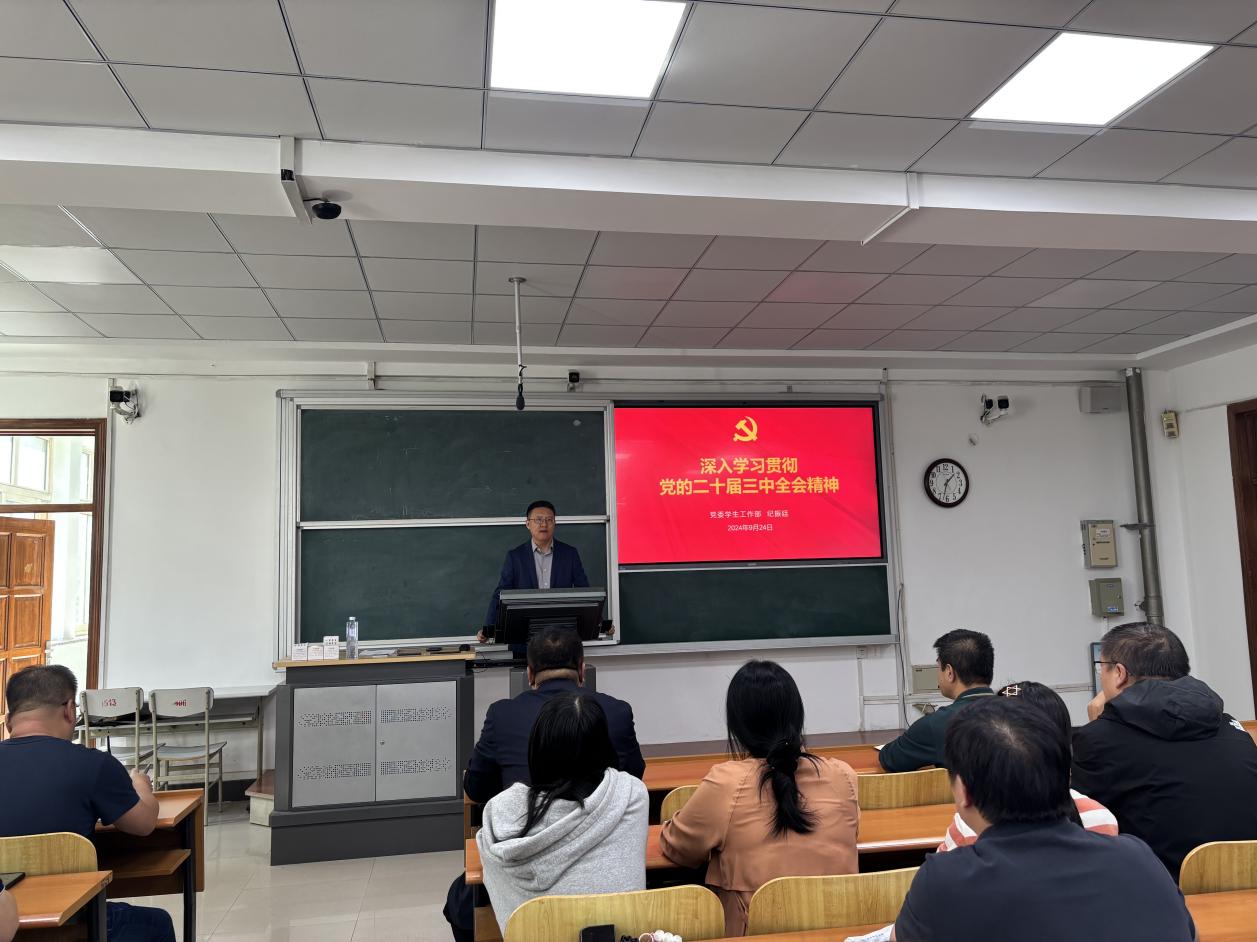 为深入学习贯彻党的二十届三中全会精神,根据学校党委的总体安排和科学部署,MK体育在线(中国)唯一官方网站矿业工程学院、继续教育学院、体育部于9月24日,在博学楼A305教室举办了学习宣传党的二十届三中全会精神宣讲报告会,学校宣讲团成员学生处处长纪振廷作题为《深入学习贯彻党的二十届三中全会精神》的宣讲,全体师生党员参加。