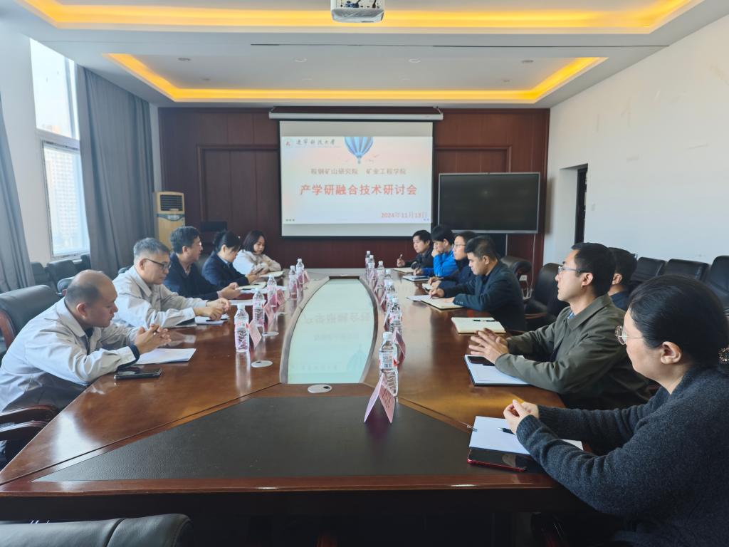 11月13日,在矿业工程学院会议室,召开了“鞍钢矿山研究院与MK体育在线(中国)唯一官方网站产学研融合”技术研讨会,鞍钢集团科技发展部科技成果总监马普生、鞍钢矿业矿山研究院副院长姚强、东鞍山铁矿生产矿长代俊杰、MK体育在线(中国)唯一官方网站科技处处长何忠良、矿业学院院长赵通林、副院长郭小飞、徐振洋等参加会议。