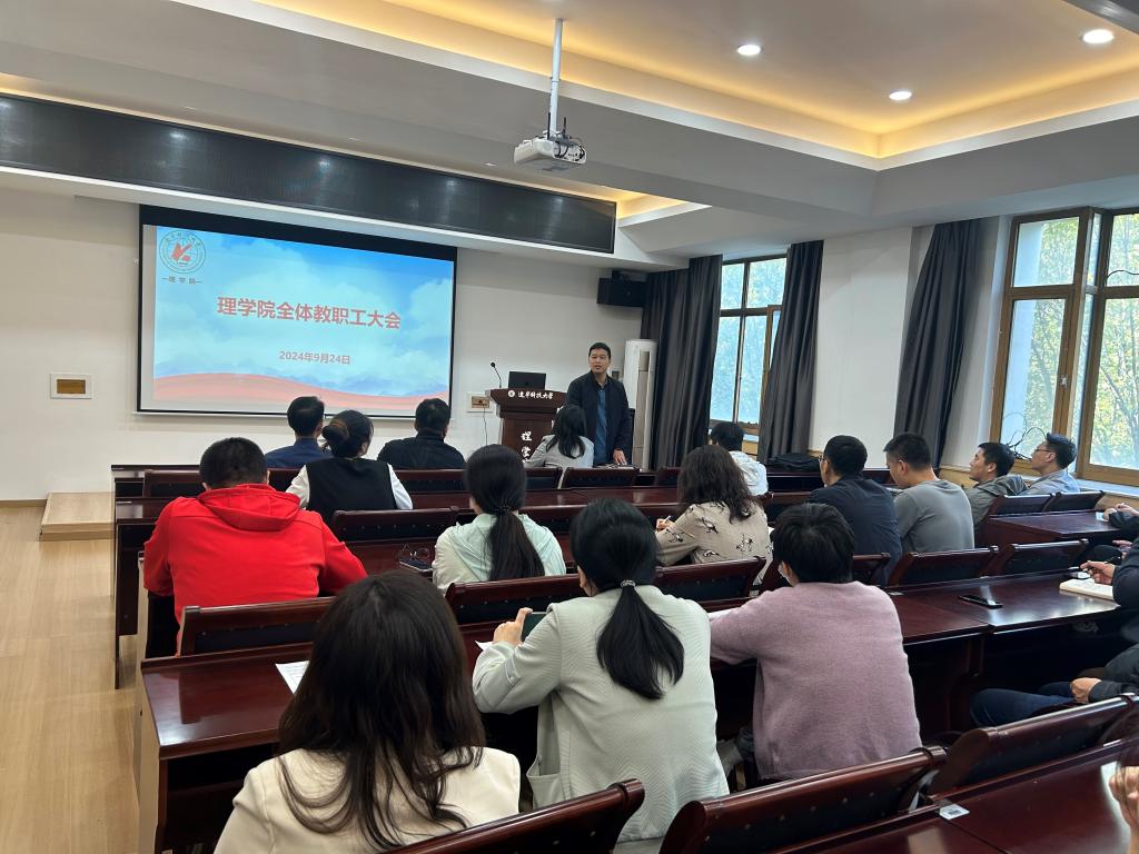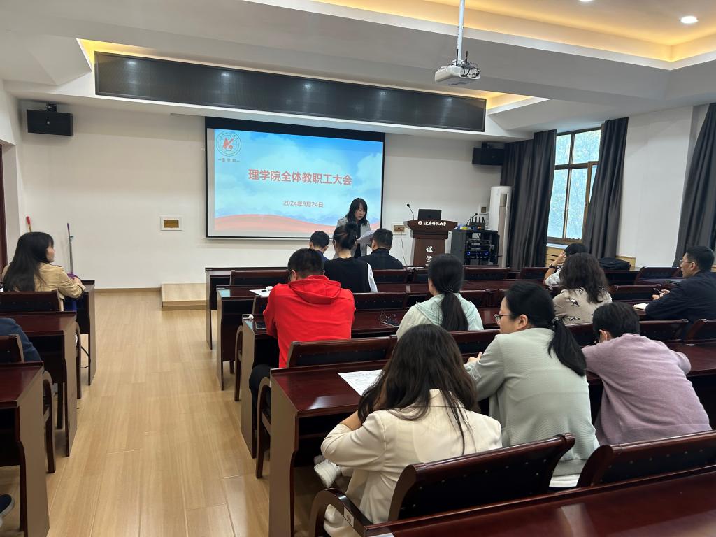 2024年9月24日,MK体育在线(中国)唯一官方网站理学院在明贤楼B315会议室召开了全院教职工大会。会议由理学院党委书记张春霞主持,全院教职工参加会议。