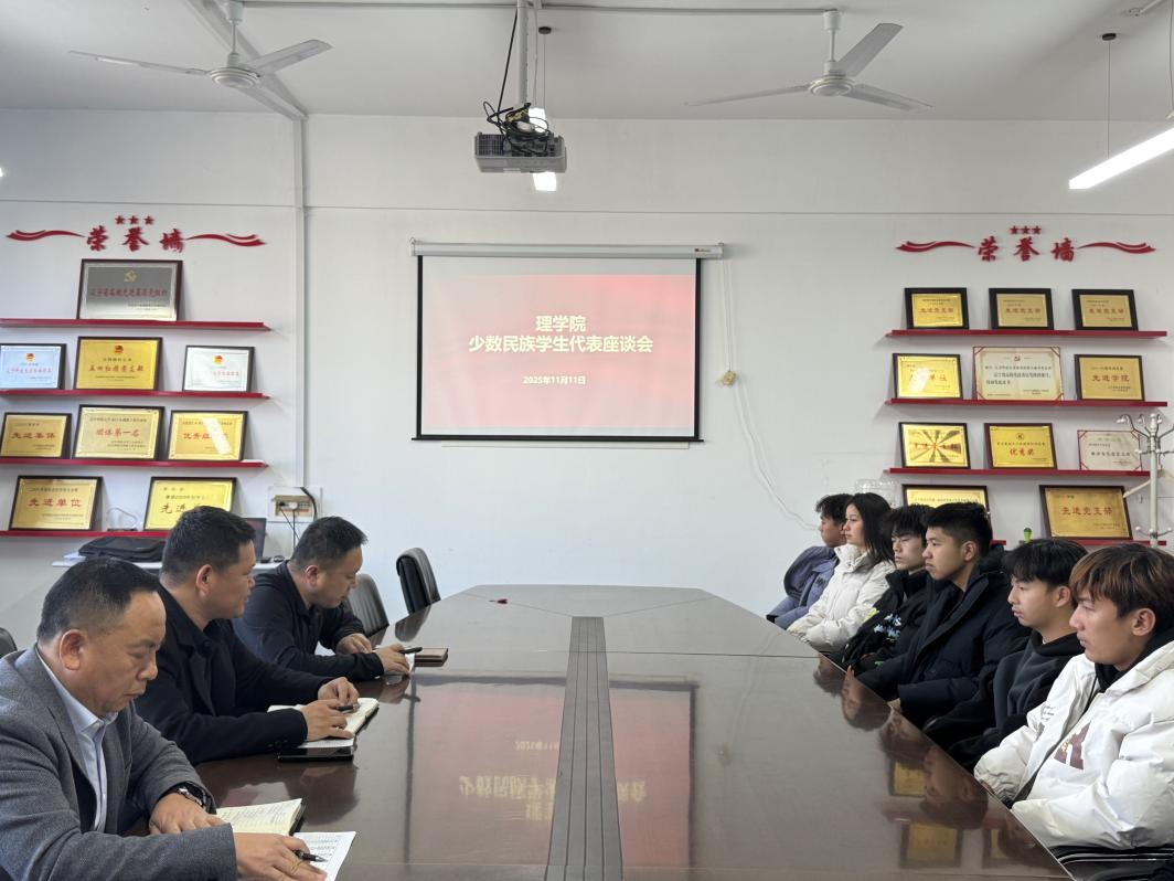 11月11日下午,理学院在明贤楼B311会议室召开少数民族学生代表座谈会。座谈会由院党委书记刘国良主持。党委副书记李春生,党委统战委员、副院长王建及学院少数民族学生代表参加。
