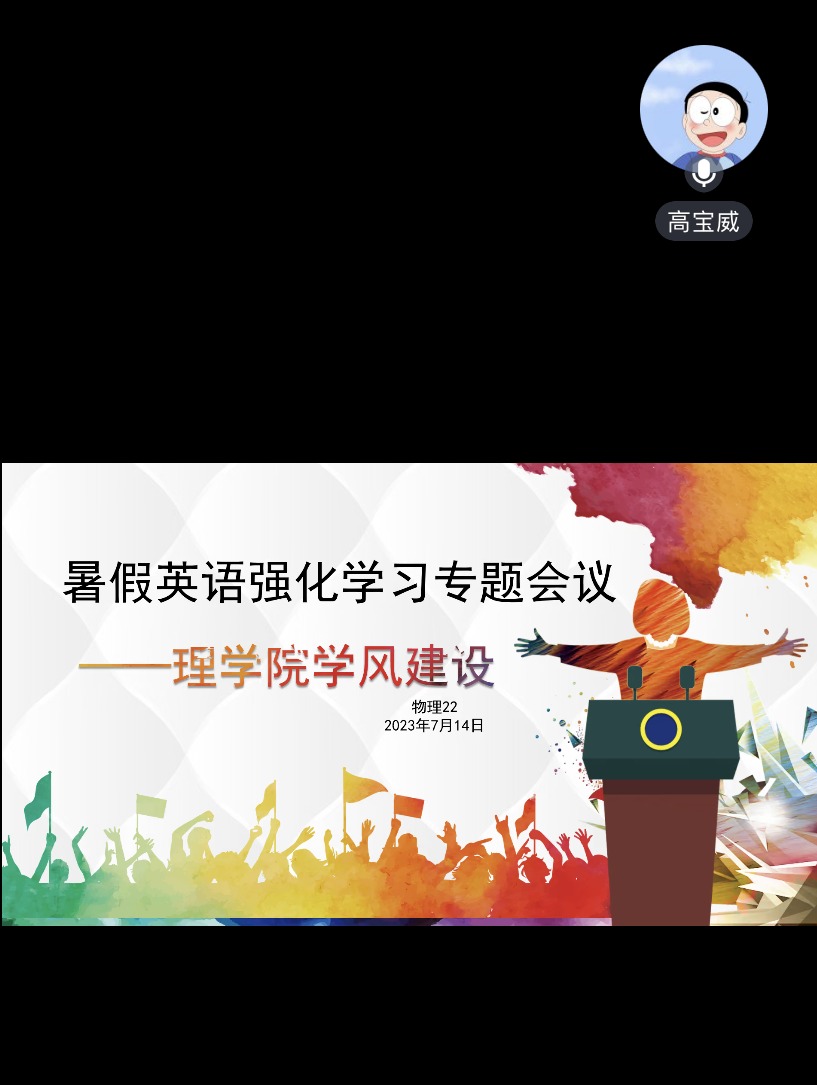 2023年暑假期间,MK体育在线(中国)唯一官方网站理学院于线上召开理学院学风建设暑假英语强化学习专题会议,理学院2022级英语任课教师、学院辅导员及全体2022级学生和家长参会。