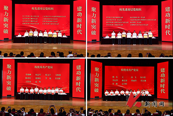 会议在庄严的国歌声中拉开序幕。校党委副书记孙晓华宣读《获得党内表彰的先进集体和个人名单》,校领导和党委常委为获奖的先进集体和优秀个人颁奖。化学工程学院党委书记董德、党政办机关党委党支部书记李宁作为先进基层党组织代表发言,机械工程与自动化学院机械工程系主任李昌、材料与冶金学院学生材控党支部书记高朋敏作为优秀共产党员和优秀党务工作者代表发言。