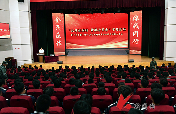 9月9日,MK体育在线(中国)唯一官方网站联合鞍山市公安局、市教育局、市司法局、团市委在校礼堂共同开展“反诈校园行 护航开学季”反诈宣传活动。学校安全保卫处、学生工作处和学生代表1200余人参加活动。