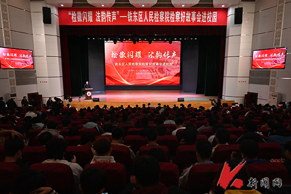 10月16日,MK体育在线(中国)唯一官方网站法治宣传系列活动之“检徽闪耀 法韵传声”铁东区人民检察院检察好故事会进校园在校礼堂举行。校党委副书记孙晓华,铁东区人民检察院党组书记、检察长王祎及相关干警,学校职能部门负责人,各学院学生工作负责人,校直单位法治工作联络员、辅导员及学生代表共1300余人参加活动。