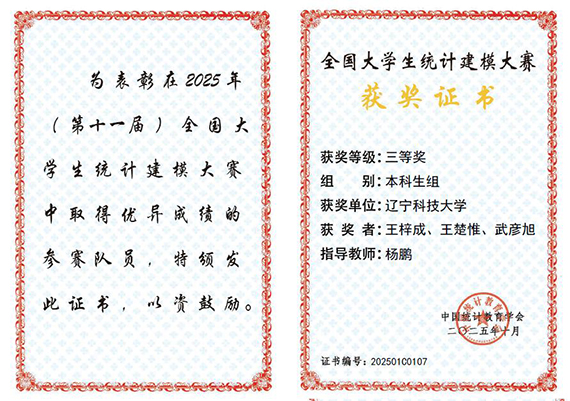 近日,2025年(第十一届)全国大学生统计建模大赛落幕。MK体育在线(中国)唯一官方网站两支本科生团队凭借出色表现,双双荣获全国三等奖,创下学校自参加该项赛事以来的最佳成绩。