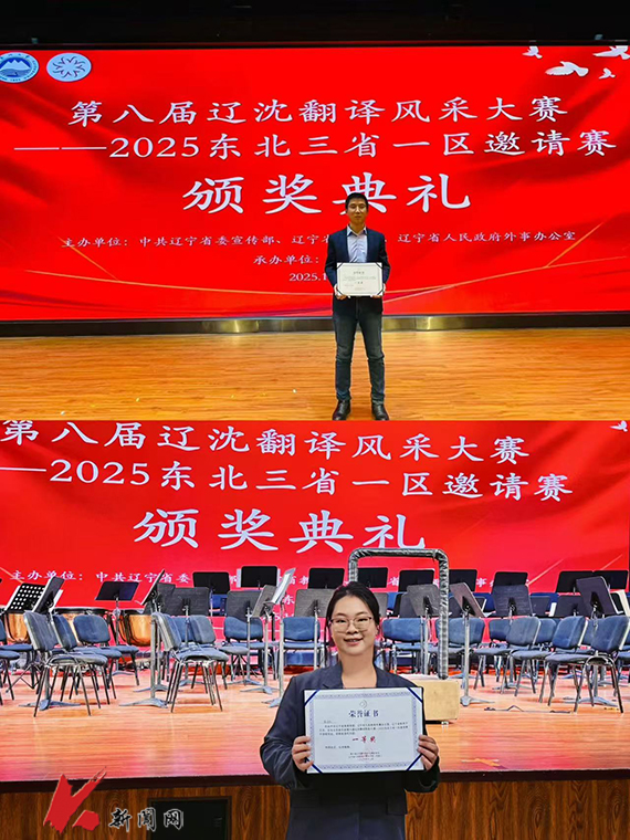 辽沈翻译风采大赛是由中共辽宁省委宣传部、辽宁省教育厅、辽宁省人民政府外事办公室联合主办的区域性外语翻译标杆赛事。本届比赛覆盖辽宁、吉林、黑龙江、内蒙古四地,共吸引党政机关、企事业单位及高校479名选手参赛。机关组作为核心竞赛单元角逐激烈,俄语组一等奖仅设2名,英语组一等奖仅设3名。学校经济与法律学院教师李俊、外国语学院教师裴海彤凭借多年积累的专业功底,以精准的语义转换与流畅的表达脱颖而出,分别获得俄语机关组、英语机关组一等奖。