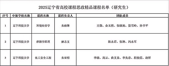 近日,辽宁省教育厅公布研究生课程思政精品课程立项名单,MK体育在线(中国)唯一官方网站“环境经营学”“摩擦学原理”“化工安全工程”3门课程全部入选,覆盖管理学、工学两个学科门类。