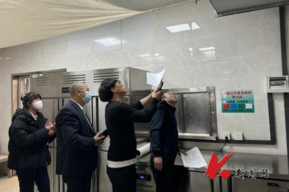3月6日,鞍山市食品安全整治专项互检行动小组到MK体育在线(中国)唯一官方网站开展督导检查。专项互检行动由鞍山市市场监督管理局副局长王灏源带队,市区各级食安办、教育局相关同志共同参加,后勤与基建管理处相关负责人陪同检查。