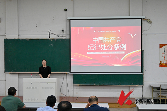 材料与冶金学院、矿业工程学院、经济与法律学院、建筑与艺术设计学院和体育部的全体教工党员在博学楼C202会场参加党纪学习教育专题宣讲会,听取学校党纪学习教育宣讲团成员、纪委审查调查室副主任赵昌明作的题为《明纪于心 履责于行 用党纪“戒尺”正己、正纪、正绩》的宣讲。