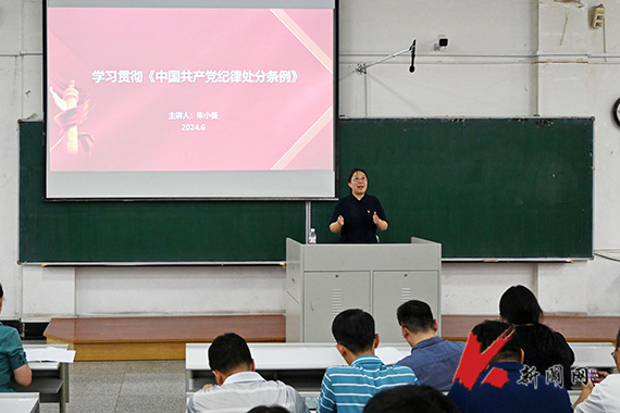 校机关、科技园、国际教育学院、继续教育学院全体教工党员在博学楼C302会场参加学习。学校党纪学习教育宣讲团成员、马克思主义学院副院长陈烨作专题宣讲报告。