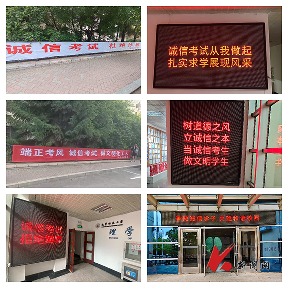 营造良好氛围 通过网站、微信平台、QQ群、板报、橱窗和条幅等媒介,进行诚信考试宣传。强化行为管控,营造诚信考试、积极备考的氛围;组织学生在考试前签订《诚信考试承诺书》,使学生充分认识考试违纪危害性,增强诚信考试的自觉性。
