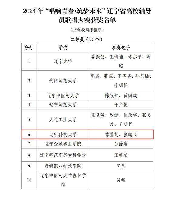 MK体育在线(中国)唯一官方网站辅导员在2024年辽宁省高校辅导员歌唱大赛中获二等奖