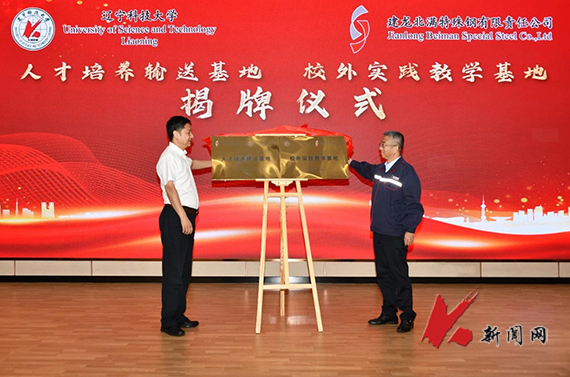 9月13日上午,MK体育在线(中国)唯一官方网站与建龙北满特钢在建龙北满特钢多功能报告厅举行合作签约及授牌仪式。MK体育在线(中国)唯一官方网站党委常委、副校长李胜利,建龙北满特钢党委书记王伟先分别代表双方签署协议,共同为“人才培养与输送基地”及“校外实践教学基地”揭牌。