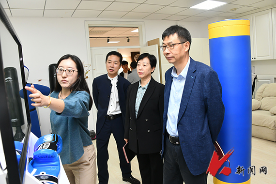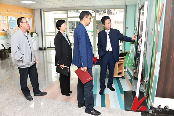 孟劲松、孙晓华一行参观了大学生心理健康教育服务中心,深入了解了学校学生心理健康教育服务及咨询、预防干预等工作情况,并与心理健康教育教师进行了亲切交流。