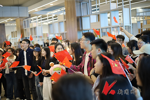 9月28日—29日,校学生会组织校园“文艺之星”在图书馆、桃园食堂、博雅广场进行音乐快闪表演《我爱你中国》,以嘹亮歌声向伟大祖国献礼,活动现场人头攒动,数百名学生驻足合唱,手中的旗帜汇成红色的海洋。