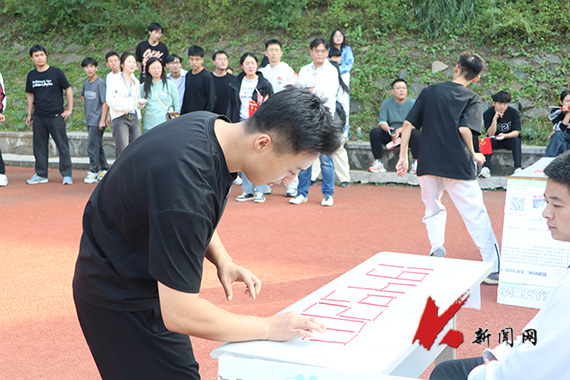 活动中,同学们以班级为单位,在集合处领取纪念卡片和小国旗,写下对祖国的祝福话语后,便沿着规定路线开启“三走”。在主体育场“75年中国”打卡点,同学们通力合作,利用身体快速准确摆出“中国”字样,挥舞着手中的旗帜,齐声高喊“我爱你中国”。在东体育场“75年时光”打卡点,同学们齐心协力,利用火柴快速准确摆放出“1949”和“2024”字样,表达对祖国母亲75岁生日的祝福。在博雅广场“75年路程”打卡点,同学们双腿夹着气球沿着特定路线——“75”行走,在运动中感受祖国75年栉风沐雨的光辉历程。在工业园凉亭“75年知识问答”打卡点,同学们围绕党史、新中国史和学校历史沿革等进行答题,他们在为新中国所取得的辉煌成就而感到自豪的同时,也深刻领悟到新中国从百废待兴到如今繁荣富强,是党和人民共同奋斗的结果。“三走”途中,同学们纷纷拍照打卡,定格MK体育在线(中国)唯一官方网站美景,留下美好祝愿。