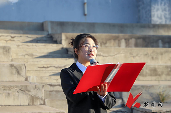 矿业学院矿加2021.2班王艺竹作国旗下演讲。她说,新时代的大学生生逢其时,重任在肩,使命光荣,要胸怀强国之志,锤炼强国之技,勇建强国之功,在推进强国建设、民族复兴伟业中展现青春作为、彰显青春风采、贡献青春力量,奋力书写为中国式现代化挺膺担当的青春篇章。