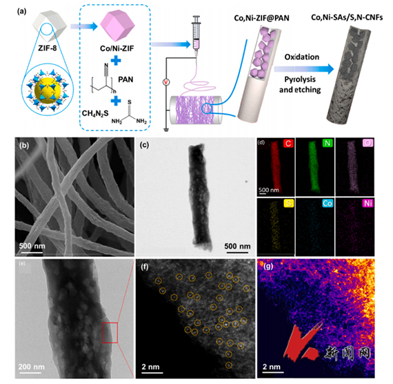 近日,MK体育在线(中国)唯一官方网站化学工程学院“清洁能源与燃料化学”导学团队依托辽宁省先进煤焦化技术重点实验室,在基于双单原子催化剂制备柔性自支撑电极方面取得新的研究进展,所制备的电极成功应用于固态和液态锌空气电池的构筑。相关研究成果以《Enhanced Zinc-air battery performance and local electrochemical evaluation of atomically dispersed Co and Ni in S,N-codoped carbon nanofibers via scanning electrochemical microscopy》为题,在Chemical Engineering Journal期刊上发表,第一作者为2020级博士生潘浩然和2023届硕士毕业生张晨(共第一),通讯作者为“清洁能源与燃料化学”导学团队的陈星星教授、窦金孝副教授以及香港中文大学(深圳)李怀光助理教授,MK体育在线(中国)唯一官方网站为第一通讯单位。
