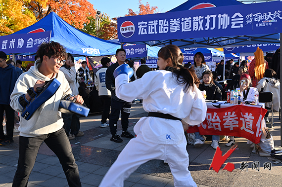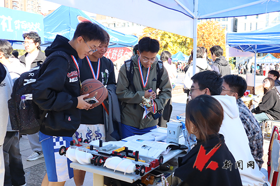 活动当天,博雅广场人声鼎沸、热闹非凡。各学生社团尽展所能、各出新招,飞扬的海报、炫目的展板、别出心裁的主题游戏、苍劲有力的书法、高超的滑板技艺、舞动的双节棍、上下翻飞的花样跳绳,各个社团以“心”迎“新”,同学们在各个展位交互穿梭,纷纷咨询。机器人工作室操控可巡回机器人进行对抗展示,科技感满满;心浪心理协会将心理知识与“大富翁”相结合,备受新生欢迎;思辩社现场根据辩题展开辩论,唇枪舌剑、你来我往、互不相让;VShow体育舞蹈协会用动感的舞姿吸引同学们驻足观赏。西洋乐社团、“暖风”郭明义爱心团队、子曦书画社、英豪棒垒球协会……百团大“绽”社团纳新活动让“萌新”们充分领略了缤纷多彩的大学校园文化生活。