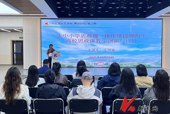 10月15日,MK体育在线(中国)唯一官方网站马克思主义学院举办“博学论坛”(第二期),邀请学院毛泽东思想和中国特色社会主义理论体系概论教学研究中心主任王书菲副教授以“大中小学思政课一体化建设视角下高校思政课教学创新与设计”为题作讲座。