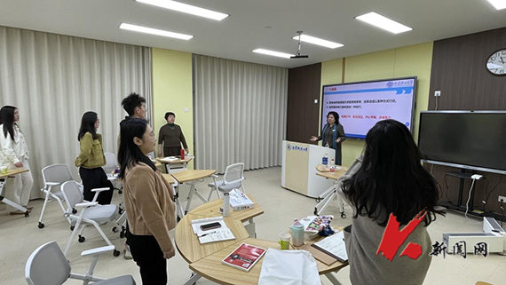 在为期2天的技能培训中,胡月结合实际案例,细致讲授、分析大学生常见的心理困扰,条理清晰地为参培教师讲解辅导员心理疏导的步骤和咨访关系的建立,重点训练了资料的收集和评估转介,以及倾听、共情、积极关注等咨询技术的合理运用。