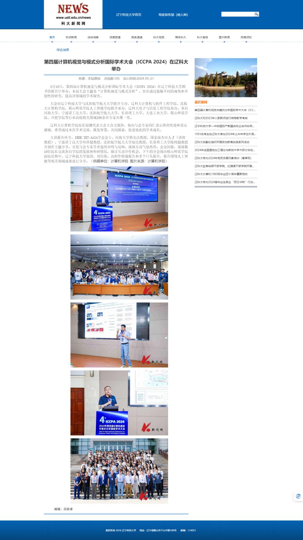 第四届计算机视觉与模式分析国际学术大会(ICCPA 2024)在MK体育在线(中国)唯一官方网站举办