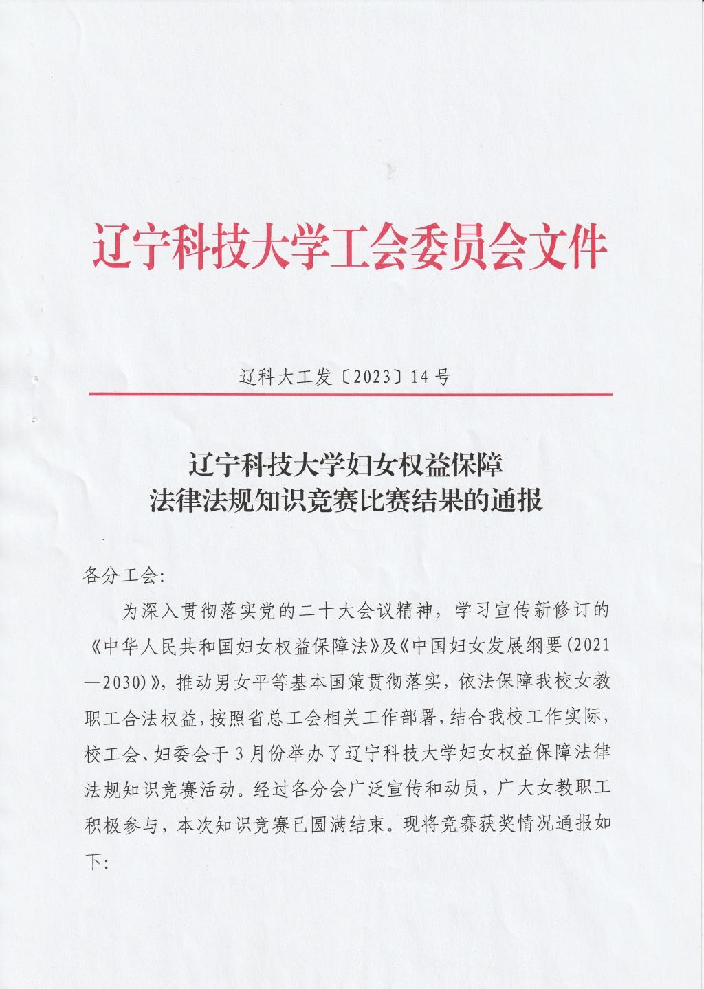 5月4日,学院工会组织女教工参加的学校妇女权益保障法律法规知识竞赛公布结果,获二等奖1项、三等奖1项、优秀奖3项。