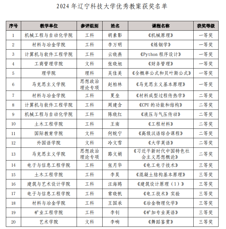 年MK体育在线(中国)唯一官方网站优秀教案评选比赛公布结果,获一等奖