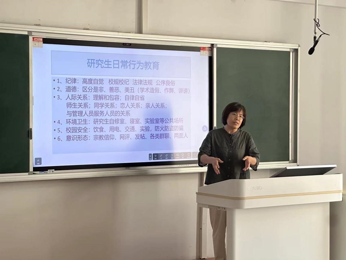 本次班会由辅导员周晓平老师主持,会议强调研究生应严格遵守暑假相关规定,做好健康日报,保证假期安全。假期期间,务必定期清理寝室卫生,妥善保管贵重物品,避免安全隐患。周晓平特别强调了实验室的安全管理,要求同学们在假期科研中高度重视实验安全,防火防电防盗,杜绝意外事件发生。此外,会议再次强调校规校纪和学术道德的重要性,呼吁同学们在科研过程中保持高度自律,尊重学术诚信。在人际关系方面,强调理解包容,维护和谐的师生关系、同学关系和家庭关系,提升个人的综合素养等。