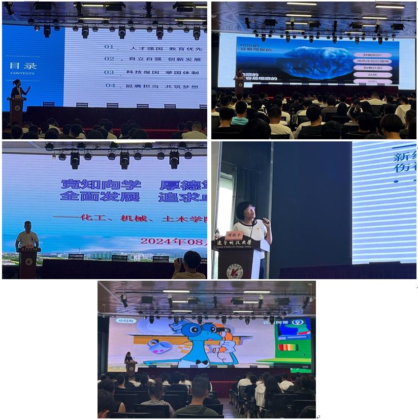 8月30日,土木工程学院与化工学院、机械学院在艺术馆多功能厅联合举行了入学教育活动,共有五个部分内容。杜桂萍教授作《理想教育》讲座,激励同学们树立科技报国的志向,坚定学术道路;庄郁馨教授以《心理健康教育》为题,鼓励新生在专业学习的同时,关注心理健康,实现全面发展;化工学院党委书记董德主讲了《校史校情,校规校纪教育》,他通过生动案例,强调了遵守校规的重要性;周晓平教授为新生同学讲《入党启蒙教育和党规党纪教育》,引导同学们树立正确的入党动机,遵守纪律,积极进取,争取早日入党;最后,机械学院党委书记林雪芝以视频引入,开展校园安全教育,提醒同学们时刻保持安全意识,保障健康和安全。