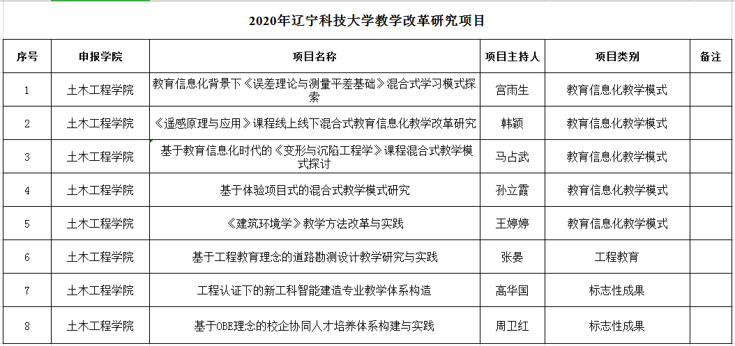 2020年MK体育在线(中国)唯一官方网站教学改革研究项目推荐汇总表