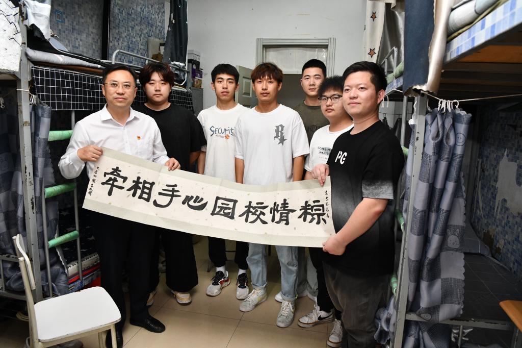 座谈会后,宋明凯及相关教师一同走访了校内4舍学生寝室,与寝室同学亲切交流,关心同学们的学业和生活。同学们将亲手制作的书画送给老师,表达了对老师真挚的祝福。