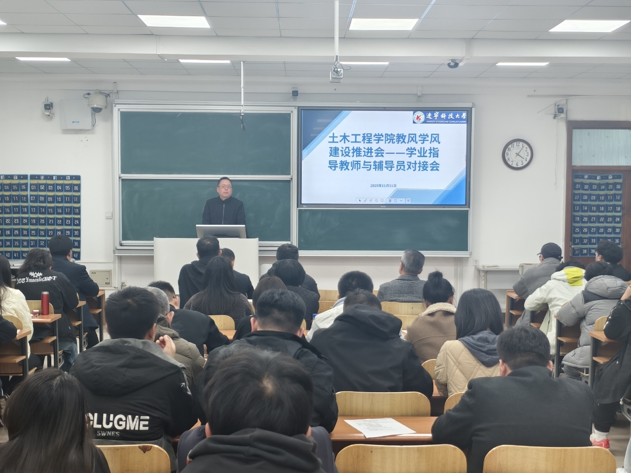 为进一步加强教风学风建设,土木学院于11月11日召开教风学风建设推进会暨学业指导教师、辅导员与学生骨干对接会。会议旨在明确各方职责,打通信息壁垒,践行高效联动的育人机制,共同助力学生成长成才。学院领导班子、全体学业指导教师、辅导员、班级学生骨干参加会议。