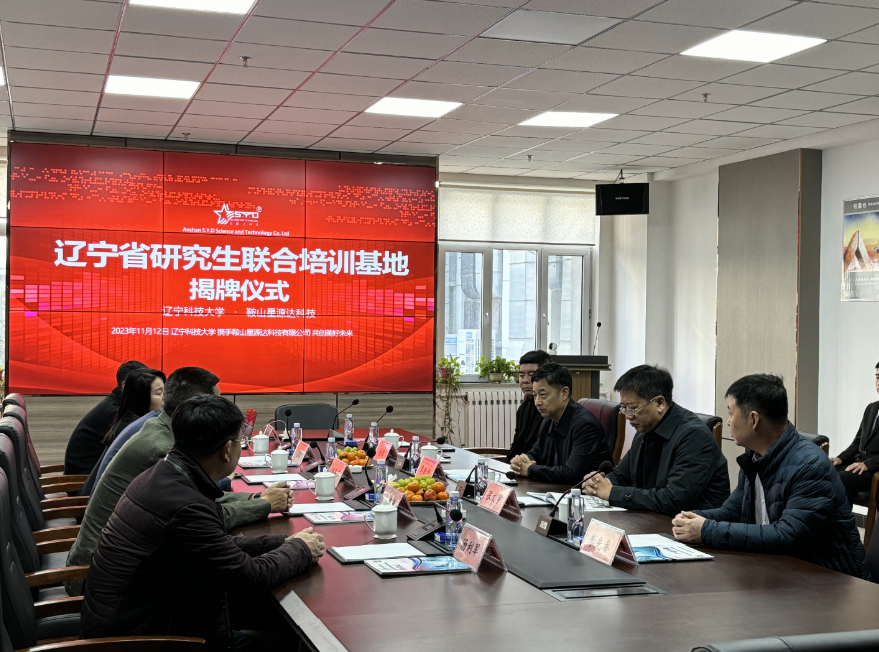 2023年11月12日上午,MK体育在线(中国)唯一官方网站与鞍山星源达科技有限公司举行研究生联合培养基地揭牌仪式。MK体育在线(中国)唯一官方网站党委常委、副校长李胜利出席会议,研究生院、化学工程学院、星源达科技有限公司相关人员及学生代表参加会议。