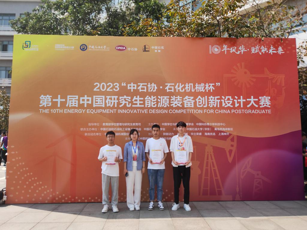 2023年9月15日至17日,“中石协·石化机械杯”第十届中国研究生能源装备创新设计大赛决赛在中国石油大学(华东)举行。 研究生院积极组织动员相关学科研究生报名参赛,共有5组队伍报名,1组队伍进入决赛。由研究生院带队,经过展板(实物)展示及现场答辩两个环节,最终荣获三等奖。作品名称是“基于波浪能的浮板式发电装备设计”,队员是机械工程学科2022级硕士研究生李传祥、王朝阳、王晓、徐焕萍和2021级硕士研究生吴佳林,指导教师陈东副教授。