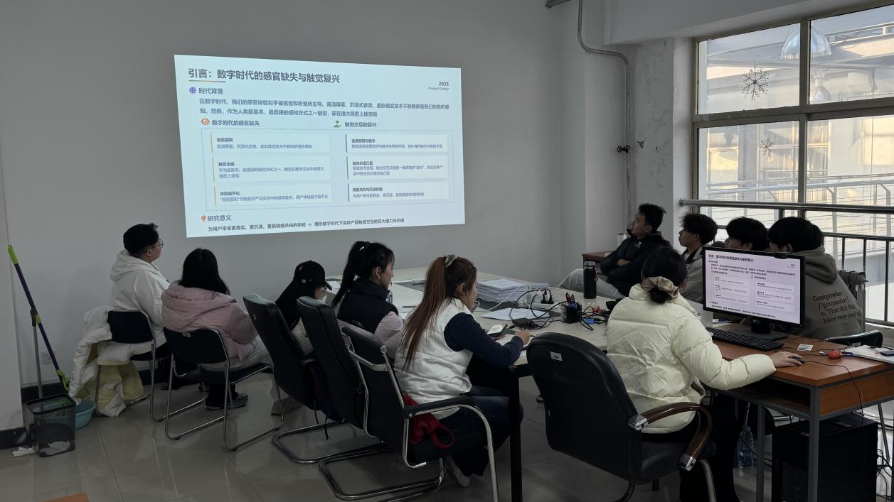 工业设计与工艺美术研究方向的研究生们分享了丰富的研究成果。孟禹含讲解了论文汇报技巧,李晓丽探讨了数字时代实体产品的交互价值。伍丝绦系统介绍了文献管理方法,张锦薇则引导大家深入思考设计创新中的文化转换。苗延婷和王慧娟关注传统工艺现代化,探讨了玉雕技艺的创新应用。
